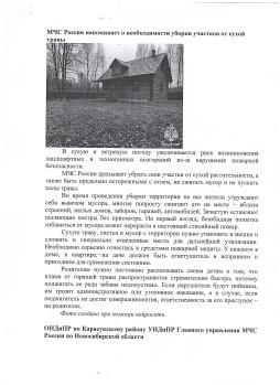 МЧС России призывает убрать свои участки от сухой растительности, а также быть предельно осторожными с отнем, не сжигать мусор и не пускать палы травы.